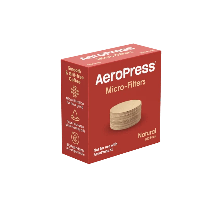 Our biodegradable natural paper micro-filters absorb bitter oils, filter fine grounds, and ensure smooth, grit-free coffee.