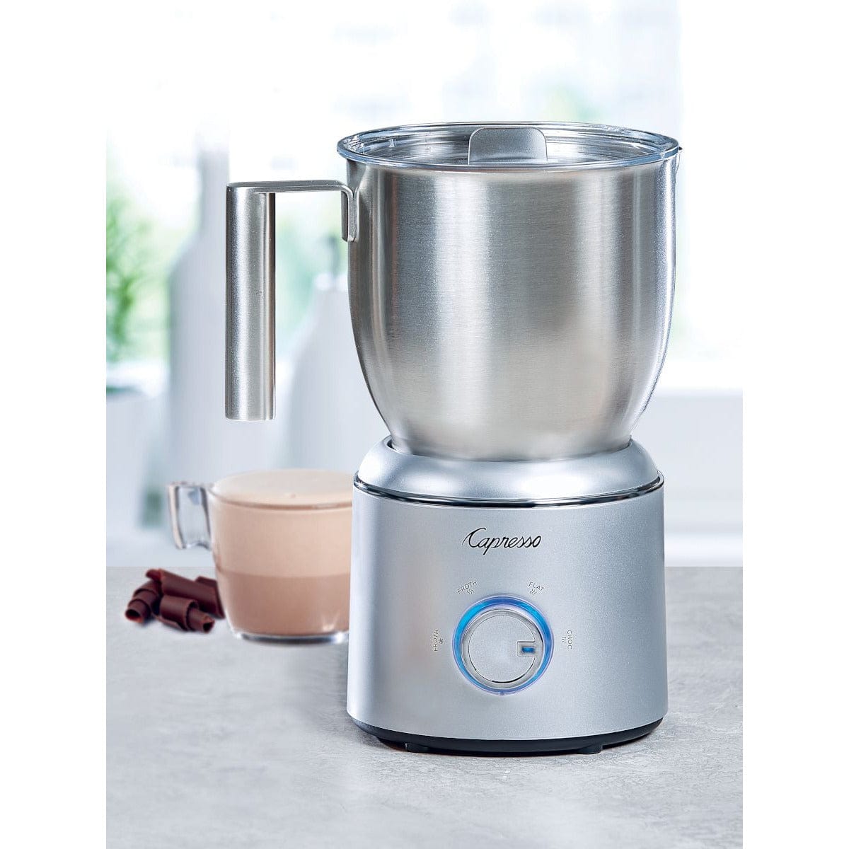 There is no other countertop frother that offers more versatility. It comes with two frothing disks and one heating disk, which store securely in the bottom of the base. By using different disks with different settings, the user can select and vary milk texture for trendy flat whites, cappuccinos, lattes, hot cocoa and more.