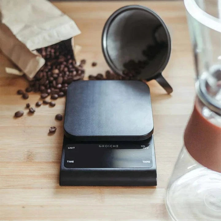 The ALBANY is a digital scale with a built in timer to make your morning brew process easy every time! We like to use the ALBANY to measure our coffee grounds in order to brew the perfect cup of pour over coffee. The ALBANY weighs your ingredients quickly and accurately. It has a tare button to calculate the net weight of your ingredients by subtracting the container weight. This must-have tool for your kitchen can also conveniently be used for baking and cooking. Easily adjust the units weighed with ml, oz or the ultra accurate 0.1 gm precision.