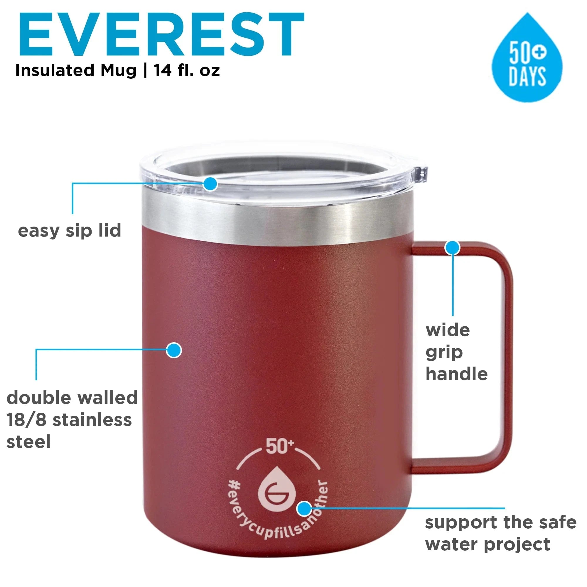 The EVEREST Insulated Camping & Travel Mug is the perfect companion for the outdoor enthusiast! Keep your beverages hot or cold with the double walled vacuum insulation.
