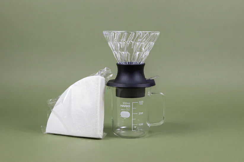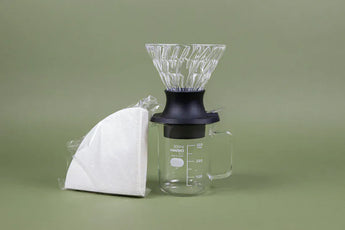 The dripper set comes with a 40 pack of tabbed 02 white filters and a glass server with a practical capacity of 300ml.