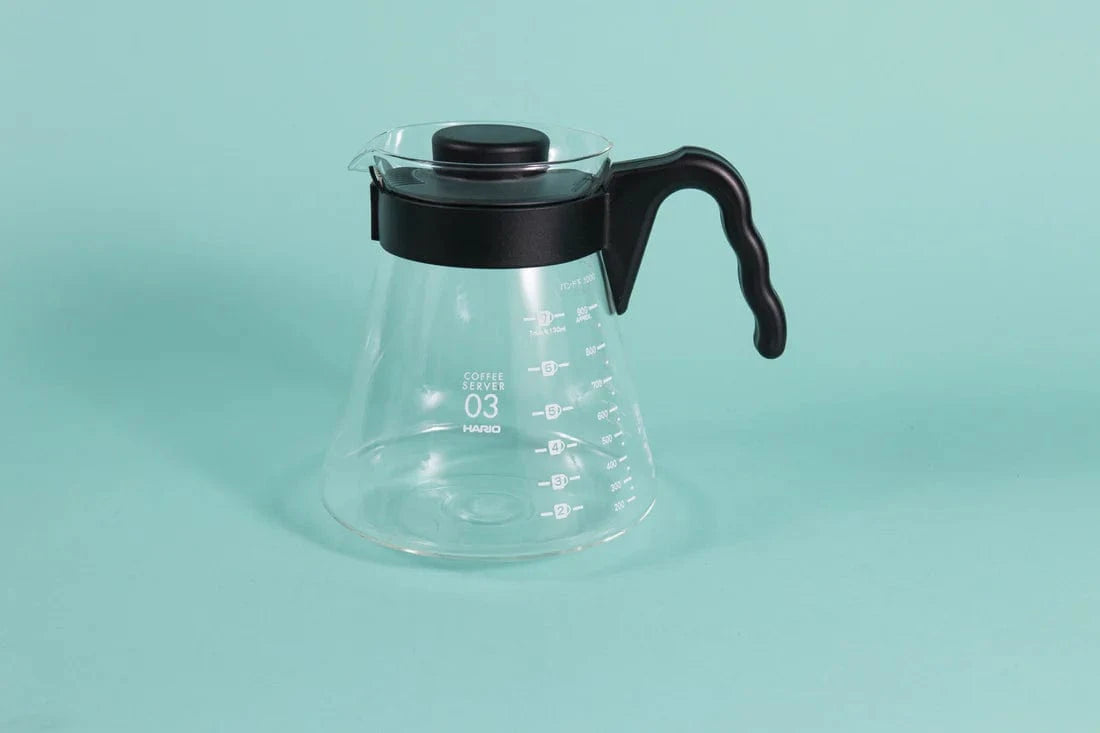 This coffee server features our signature heatproof glass and a handle for easy pouring. It comes with measurement lines making it easy to brew the right amount. Microwave safe with or without the lid. This server is designed to minimize contact between the pot and the table to keep the coffee warm. The lid can be placed upside down to catch drips from the V60 dripper.
