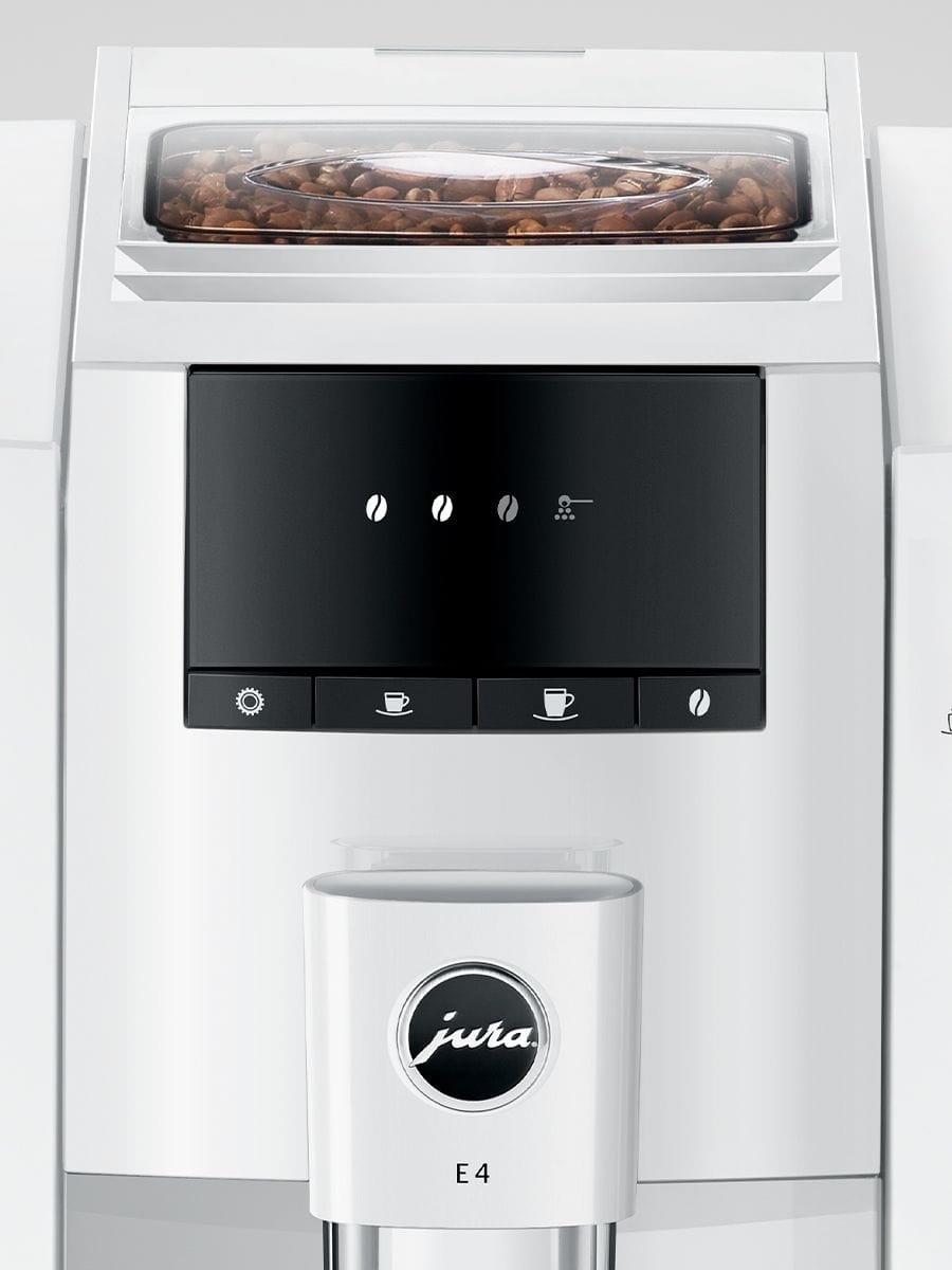 Jura E4 Automatic Coffee Machine – Effortless Espresso with Bean-to-Cup Brewing – Piano White Finish
