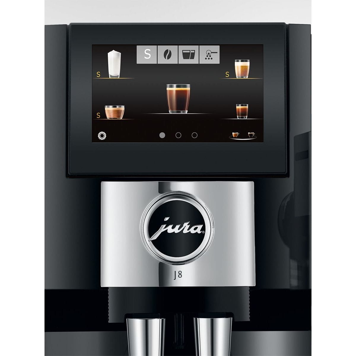 Jura J8 Espresso Machine – Barista-Quality Coffee at Home with Dual Spouts & Aroma Grinder – Piano Black Finish
